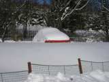 Zrovna u nás řádí zima a bráchův stroj se zamaskoval na zahradě tak Vám posílám foto pro pobavení.