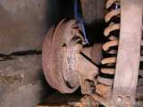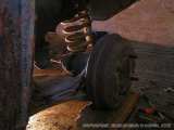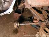 Zima 2oo5/2oo6 - Vyndávám z eRka přední nápravu, kupodivu to jde docela snadno, se žádnými většími problémy se nesetkávám. Po vyndání nápravy s úlevou zjišťuji, že alespoň most přední nápravy je v pořádku. Alespoň vím, k čemu budu moct dovařit zbytek auta :)