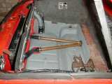 Dalším krokem je vyřezání otvoru v předním čele a kapotě, upevnění předního chladiče a stavba chladičové stěny. Já zvolil chladičovou stěnu z hliníkového plechu tl 2mm, upevněnou 12 šrouby přes gumové těsnění k držákům (L-profil) nanýtovaným a přitmeleným k podběhům. Lze však samozřejmě chladičovou stěnu vevařit, problémem však bude případná demontáž trubek, která počítá s možností vyjmutí chladičové stěny. Chladičovou stěnu na horní hraně vhodně vytvarujeme tak, aby dosedala ke kapotě a opatříme vhodným těsněním (těsnění kufru Š120). Před chladičem je umístěn "usměrňovač vzduchu", který plní funkci držáku mřížky a zamezuje vzduchu k proudění mimo plochu chladiče. Celý usměrňovač je vyroben z hliníkového plechu a uchycen čtyřmi šrouby k přednímu čelu. Po připojení chladiče k trubkám lze celý systém "napustit" vodou a odvzdušnit. V mém voze ještě přibyla nutnost otočit hrdlo nádrže do kufru - to je vyřešeno zkráceným hrdlem Š120 a otvorem v chladičové stěně. Celek pak v kufru vypadá takto, detail připojení hadic k termostatu a zadnímu chladiči je zde.
