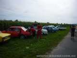 10:30 jsme po rozpravě před samotnou AOS a zařadili jsme se do startovní kolony.Při rozpravě se pořádala finanční sbírka na opravu laku poničeného eRka.Stovka s poničeným štětkolakem si určitě pomůže sama.Doufejme že vybraná hotovost k nápravě škod postačí.