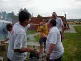 Po závodech se začalo ohřívat dovezené prasátko a vedro se kompenzovalo chlazeným sudovým gambáčem. Jak prasátko, tak pivečko byli výborné a jak je vidět na fotkách kolem prasátka se točila hlavně nejvytříbenější gurmánská společnost.
