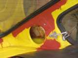 - Přes několik barevných pokusů, jsme se s eRkilem dopracovali ke kombinaci žlutá-žlutá. Půjčila jsem kompresor a začala si hrát. Nárazníky do chromové žluti, lízátko do barvy kastle (namíchaný na koleně z chromové a sluneční žluti), kapky jako nárazníky. Ty nárazníky byly docela zlo, blbec jsem koupila stříkací tmel a tím si přidělala dost práce. Chybama se ... bla bla bla ... Práce nakonec docela dost pěkná, jen přední nárazník je nedostříknutej, neb už musel na auto. Bez bliken se jezdí špatně.