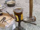 Celý rozvody nový, ale starou pumpu majitele vypláchnout nenapadlo .. to je opravdu brzdovka v tý flašce... Pak už jen kola nahoru, eRkil dolů. Světe div se, auto sedí jako přibitý a brzdíííí!!! A jezdila sem celkem spokojeně. O týden později, nebo tak nějak, šel eRkil na špalky a začla sem jarní úklid. System co povolí pod kladivem musí dolů, ověřenej na trabantovi. Několik hnilotin se našlo. Auto mělo být komplet vyvařený!!! ..