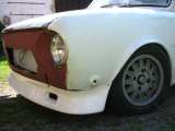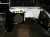 Někdy na začátku září jsem zakoupil čtyřpístové brzdiče včetně zánovních svisláků a celkem slušných kotoučů. Třmeny jsem se rozhodl kompletně zrepasovat, obrousil jsem je až na holý kov, následně natřel základovkou a navrch červnenou barvou. Těsnění i prachovky jsem dal nové, stejně tak i samotné pístky. Po smontování obou třmenu jsem zjistil že mi ještě dvě nová těsnění zbyli. Totálně vyčerpán jsem již neměl sílu třmeny sundavat a vysouvat pístky, abych zkontroloval jestli někde těsnění chybí. Vykašlal jsem se na to se slovy, že se při odvzdušňování uvidí jestli jsem udělal chybu já nebo ten týpek v mototechně. Destičky už měli něco za sebou a v jednom brzdiči ani nebyli, proto jsem sehnal nové (Ferodo Premium). Aby se mohli zakusovat do kotoučů s větší vervou a já při tom nemusel křečovat za volantem, rozhodl jsem se zastavět posilovač s pedálovou konzolí z eMka. Na přední nápravě se změnily pružiny. Teď jsou 210mm dlouhé (nebo spíš krátké :)), nejspíš sem to s tím snížením přehnal... Taky jsem hodil auto na kolíbku, omlátil jsem popraskanej gumoasfalt, zbytek obrousil a natřel základovkou. Na ní jsem napatlal několik vrstev Tlumex Plastu. To samý jsem udělal i s podběhy. Při téhle operace se samozřejmě objevilo několik děr, některé docela nečekaně :) Ve chvílích volna jsem si začal pohrávat se zadními světly a přemejšlet nad čirou optikou, kterou jsem po zhodnocení výsledku hodil do popelnice. Taky jsem sehnal nový motůrek. Je to 120LS z užovky GLS, deset let nejel a nejsem si jistej jestli ještě někdy pojede. Abych ho tam mohl dát musel jít ven ten starý stofkový, kterému bych tímto chtěl poděkovat za to, že mě nikdy nenechal ve štychu a omluvit se, že jsem ho tak trápil :) Po vyndání začala další část úprav vedoucí k náporovému chlazení. Vyřezal jsem zadní část dvojité motorové stěny a za ní se objevila důvěrně známá.... koroze :) Pořád spekuluju nad tím kudy vlastně povedu trubky k náporáku a nemůžu nic kloudnýho vymyslet a taky pomalu přestávám věřit, že to do jara dodělám.