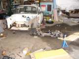 No a to je konec mini příběhu o pořízení. Mohl bych asi zmínit že hundrtka stála přes dva roky na zahradě vystavena všem povětrnostním vlivů a tak její stav nebyl zrovna uspokojivý. Všudy přítomný zelený sliz a viditelná koroze nevěstili nic dobrého. Hned po převozu se začalo s odstrojováním a někdy na konci září byla z větší části vyvařena. Naštěstí byla karoserie ve velice slušném a zachovalém stavu, takže vaření zabralo vlastně jen dva dny. Vařili se klasický věci jako vanička kufru, části prahů pod blatníky apod. Do konce roku se neudálo zhola nic, krom toho že jsem za nekřesťanskou cenu koupil vytoužený kola - Apolla (jak se říká vše má svou cenu, tahle byla sice trochu vyšší, ale po technické stránce jsou ve 100% stavu nehážou, nejsou omlácený atd. a vzhled se doladí :)). Někdy na začátku ledna jsem se rozhodl vyčistit kufr od do něj vylitého gumoasfaltu a při té příležitosti vyměnit přední nápravu za širokou s hřebenovým řízením. Řízení je teďka daleko přesnější a citlivější (původní už mělo velmi nepříjemnou vůli).