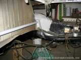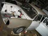 Zavařeny okapničky a C sloupky. U okapniček si to bohužel vyžádala situace, protože byly jednoduše řečeno ko. Hundrtka stála ty dva roky na dešti bez hliníkových lišt a déšť a mráz udělal své. Okapničky se rozšklebily a zrezly, zřejmě je chycená i střecha, ale ta to snad ještě pár let vydrží. Kvůli širší nápravě a hlavně kvůli širším kolům byly navařeny kulaté zadní lemy. Znovu jsem zkulturnil kufr, Ondra H. mi vyndal palubovku, abych se mohl pustit do pasování palubní desky ze seata. Taky jsme vyndali okna kvůli vaření okapniček a jednoho růžku pod předním sklem který byl skrz a muselo se řezat nebezpečně blízko těsnící gumy.