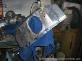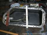 Následovala výroba vrchního plechu.Je větší viz další fota a opět má díru pro sací koš.Po zkusmém přiměření se potvrdilo že přepážky nemohou být tak vysoké bo by se vrchní plech dotýkal potrubí.Proto jsem ho kladívkem poupravil a opět vše přeměřil