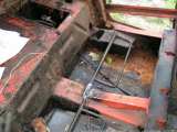 Podzim 2oo5 - Začal jsem odstrojovat skelet. To co objevuji pod velmi slušnou plechařinou mě doslova zděsí. Auto už bylo vyvařovaný a to, no hm...ZNAČNĚ neprofesionálně. Tak například zadní podběhy jsou "vyvařeny" nabodováním nového plechu přes (!) starý děravý. Na autě se jen velmi těžko hledá místo,