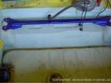 Motorový prostor částečně zbavený nátěrů a připravená vzpěra mezi tlumiče.