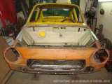 Při vyřezávání díry do předního čela pro náporák, jsem zjistil, že čelo je v hrozivém stavu. Tak jsem se rozhodl ho vyměnit. Bohužel bylo docela fest přilepené k blatníkům a nešlo sundat bez jejich demontáže.