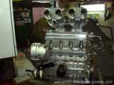 Slíbená fota motoru. Na sacím potrubí narostlo prodloužení od bratra m8rinka(díky kámo). Takže znovu slícovat a poleštit zvenku, kanály v potrubí jsou stejně hladké jako v hlavě. Na potrubí bylo potřeba vyrobit podpěru, tzv. kotvení viz. foto. To jsem spáchal sám, za inspiraci opět poděkování m8rinkovi. Webery pro změnu dal do kupy Jikra(díky Jirko). Ještě bude na reaktoru potřeba dodělat spousta věcí, tak budu doplňovat.