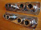 Také jsem si trochu pohrál s Webery a sacím potrubím, které momentálně prochází leštící kůrou.Trumpetky jsou zbaveny matu :o) Karburátory jsou zbavené barvy a na radu Petra byly poslány na chemické leštění.Výsledek mě velmi potěšil. Víčka jsem opět ručně vyleštil. Zbývá jen přetěsnit, vyměnit ložiska, osadit, doleštit a dolícovat sací potrubí. Kvůli focení sem je na rychlo smontil dohromady i se sacím potrubím.