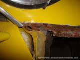 Při vyřezávání díry do předního čela pro náporák, jsem zjistil, že čelo je v hrozivém stavu. Tak jsem se rozhodl ho vyměnit. Bohužel bylo docela fest přilepené k blatníkům a nešlo sundat bez jejich demontáže.