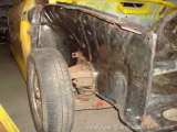 Opět jsem trochu pokročil v pracích.Vše co bylo v kufru, je odmontováno a začalo se s čištěním od tlumexu a dalších starých nátěrů. Sem tam, jsem vyvařil pár dírek, ať už od koroze, nebo od původních majitelů. Pár shnilých míst by se také našlo. Pravý vršek podběhu, jsem opravil, nebyl tak hrozný. Levý vršek budu muset vyříznout a nahradit novým.