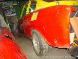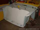 Takže předek je více méně hotov. Po peripetiích s plechovou přední kapotou, kdy na mě při broušení vykoukl sádrovej trpaslík v podobě tun kitu a haldy koroze, která na mě vykoukla na obvyklých místech. Jsem se okamžitě rozhodl použít laminátový potah přední kapoty. Odpáral jsem vrchní plech a ponechanou výztuhu jsem pečlivě obrousil, natřel odrezovačem a nastříkal základem. Po té přišla na řadu vrchní barva a to červenná Rallye 8180, přeci kvůli tomu, že se lakýra tak dobře nedostane s pistolí pod mřížku ala 130RS :oD No a tím jsem vlastně prozradil budoucí barvu vozu. Proč červená rallye, no protože přidá erku alespoň 20 "kobyl" navrch a potom ten název "rallye" mě dostal :oD