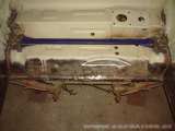 Motorový prostor částečně zbavený nátěrů a připravená vzpěra mezi tlumiče.
