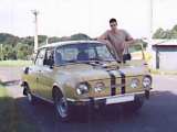 Před asi půl rokem jsem si koupil od jedné starší paní tuto Škodu 100. Byla v dobrém stavu, ale v dnešní době je to již skoro veterán:-). Proto jsem na tom začal pracovat, ať ho trošku zmodernizuji. Sehnal jsem si nálepky, auto jsem polepil a je z něj hned trošku netradiční stovka. Klasický ventilátor poháněný řemenem jsem vyměnil za elektrický. Motor je ze škody 110 s různými částmi ze škody 120 (které jsou zpětně kompatibilní, např. vodní pumpa, výfuk). Namontoval jsem halogenová světla, takže když v noci rozsvítím, tak i vidím :-).