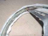 Postupy jsou v zásadě ve všem stejné, až na ten bod, že místo nějakého tenkého molitanu či vatelínu věnec obaluji polyuretanovým původně tepelným těsněním zvaným Mirelon. To má příznivou pružnost, tuhost, dokonalý vnější hladký tvar a minimální váhu. Snažím se dávat ty nejtenčí, co jsou k mání. Tloušťka stěny takovéto výplně je okolo půl centimetru. Mirelon nalepím na věnec, změřím parametry pro potah věnce a dál jede vše dle standartních postupů. Jen je potřeba počítat s tím, že zvyšováním síly věnce dochází ke zvyšování rozdílu mezi vnitřním a vnějším obvodem věnce. Rozdíl už může být blízký hodnotě 20cm a to zvyšuje nároky na pružnost potahového materiálu, tedy musí se počítat s tím, že třeba pruh látky v klidovém stavu o délce 85cm musí být schopen natáhnout se na 105cm ;o)
