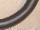 Když takhle obšijete věnec a dostatečně se nakocháte vlastní šikovností, zbýva už jen připravit si proužky koženky, kterými obalíte paprsky těsně u věnce a na druhé nepohledové straně volantu je spojíte sešitím. Hned v další "kolínské" realizaci to podám trošku podrobněji a obrazněji.