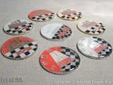 Existuje mnoho druhů středových znáčků (víc než kolik je na fotce) a jejich povrchového provedení od jednolitých pokovení do chromova, zlata, po načernalý nádech. Starší kusy mívaly obrazce "poctivě" vybarvené emailem.