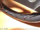 Když takhle obšijete věnec a dostatečně se nakocháte vlastní šikovností, zbýva už jen připravit si proužky koženky, kterými obalíte paprsky těsně u věnce a na druhé nepohledové straně volantu je spojíte sešitím. Hned v další "kolínské" realizaci to podám trošku podrobněji a obrazněji.