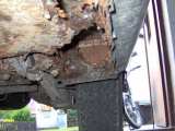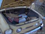 Po vyčištění karburátoru a odvzdušnění brzd jsem auto projel a zavezl do garáže. Následovala debordelizace, vytrhání koberců a filců z interiéru, odstranění myšího hnízda a několikeré propláchnutí vodou. Už to ani vevnitř tak nesmrdí. Horší to je po odstrojení předku vozu...viz fotky.