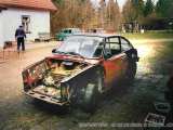 Asi páté erko jsem koupil od kamaráda Ládise z Praskoles. Bylo bourané na pravý bok, ale jinak zdravé, bez dokladů. Cena příznivá. Částečně odstrojená karosérie byla má poenta opět na stavbu RS. Odstrojil jsem jí úplně a pozval si karosáře. Jeho slova mě sprchla. Srovnám ti to na stolici. Dodej přední podběh,dno kuftu,práh a udělám to. Cena? Lidovka od oka 15tkč. Zkoušel jsem ostatní známé i neznámé a výsledek byl stejný. Buď udělané na koleni za pár, ale kvalita žádná. Nebo stolice, ale pecka cena. Auto jsem rozřezal a zbytek prodal. Levé dveře se slopkem a levý blatník prodané do Oseka. Prodej těchto dílů mi zaplatil půl koupě auta. Pak střecha šla ke Climberovi. Jinak zbytek skončil ve šrotě. Chtěl jsem si akorát nachat přední torpédo, ale bohužel "magneti" mi ho akčně ukradli.