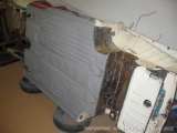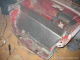 V kufru jsem plánoval umístit chladič, takže nezbývalo než vyrobit chladičovou stěnu. Z kartonu jsem vyrobil šablonu a pak vyříznul do plechu. Ohyby jelikož nemám ohybačku na plech jsem udělal ve svěráku. Potom jsem navařil výztuhu mezi uložení tlumičů, potom mezi bočnice blatníků a pak samotnou stěnu.Také jsem navařil uložení pro chladič a do čela držáky. Chladič mám z Feldy 1.6 .