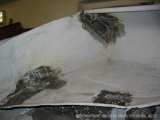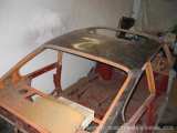 Od podvozku a náprav jsem se přesunul na "horní" část auta. Kabinu posádky, kufr a částečně na motorovou část. I zde bylo co vyvářet. Asi nejhorší byla samotná střecha. Poté co jsem z okapničky vybrousil asi centimetrovou vrstvu kitu jsem spatřil co jsem vidět nechtěl. Okapničky prožraný skrz na skrz. I samotný plech strřechy, když jsem vyndal střešní okno se pěkně rozvlnil. Po úvaze jsem se rozhodl pro lamino střechu. Abych ji mohl koupit i s přední lamino kapotou, padl na to měsíc prázdnin. Peníze jsem vydělal tak se jelo k Práškovi pro díly.