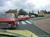 Zapoměl bych zmínit, že již zde vznikali první snímky z rukou věhlasného ústeckého fotomága Petra Berounského ( http://www.berounsky.cz ) jež byl přizván jako čestný host na tuto fotoseanci. Zařadil jsem se se svým Superstrojem na konec naší kolony. Jelikož Superstroj poslední dobou ztrácel olej a to hodně, že jízdu vozem sem tam doprovázeli i zajímavý kouřový efekt, obzvlášť když se dostaly kapky oleje do styku s výfukovým potrubím. Cesta ubíhala vcelku hladce, potajmu jsem sice sledoval kontrolku a tlak oleje neboť superstroj má v háji olejový chladič a trošku silnici značkuje. Někdy Erku říkám štěně, neboť všude kde stojí, zanechává loužičky. V Krupce se knám přidal zbytek účastnících se vozů. Můžu říct, že spanilá jízda těch kupátek byl pro mě fakt neskutečnej zážitek. Když jsem, jako řidič jednoho z nich viděl před sebou toho kroutícího se hada jedoucí nostaligie. Myslím si že děda, stojící v jedné zatáčce kousek za Krupkou, držící v rukou vnuka, mu pak říkal: "Vidíš Pepiku, taky sem ho chtěl mít."