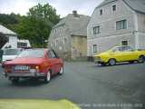Blíží se čtvrtá hodina. Jsem na řadě a vyrážím. Představte si, že s tou úžasnou leštěnkou, ano strojem Jirky Poruby. Mám strach, abych ho při předjíždění neštrejchnul, neboť by to byl fakt děsnej průser. Ale jo zmákli jsme to. Nic jsme neodřeli. Půl hodinky na to se všichni přesouváme k hradu Krupka. Vyrážíme tedy na další pěknou spanilku. Auta se šinou pomaličku v koloně na vrch Cínovec. V jedné zatáčce vidím jak stojí Lukáš Petira a jeho Hnědák. Zastavuju u něj. Motor hnědáka už dořechtal. Vypadá to na problém s olejovým čerpadlem. Lukáš pomalu vyjíždí a já sním. Přijíždíme jako poslední na Hrad. Při jízdě z Komáří Vížky jsem zhasnul motor Superstroje asi z mladické nerozvážnosti. Dole pod kopcem jsem málem nezstavil a s brzd se hulilo jako blázen, vytekla mi totiž z ložiska vazelína.Na hradě jsem erko nechal vychladnout. V hradní restauraci jsme získali vysněné diplomy. Já mám za nejzelenější Erko srazu i přesto že Superstroj má barvu žlutou šampaň :)