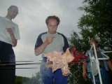Po závodech se začalo ohřívat dovezené prasátko a vedro se kompenzovalo chlazeným sudovým gambáčem. Jak prasátko, tak pivečko byli výborné a jak je vidět na fotkách kolem prasátka se točila hlavně nejvytříbenější gurmánská společnost.