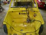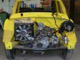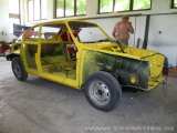 Každopádně skutečnost, že už jsem měl skoro rok řidičák a stále nebylo čím jezdit, vedla ke koupi dalšího, tentokrát žlutého eRka. Od toho momentu uplynulo už 6 let, během kterých jsme nejdřív makali na červeném, zatímco žluté jsem běžně používal, pak jsme červené zpojízdnili a já rozdělal žluté... To všechno prozatím přeskočme a posuňme se do současnosti. Makám teď na žlutém autě. Cílem je dostat ho do stavu, který bude v rámci našich možností a schopností co nejlépe odpovídat jeho původní podobě při výjezdu z fabriky (r. 1980). Jiná je pouze barva – místo původní oranžové (kterou jsem spatřil až při odstraňování "saniťácké pískové žluti" :-)) má auto žlutý lak, který se používal na Fabii RS. K dnešnímu datu má eRko až na drobnosti hotový spodek – nápravy, převodovka, motor. Hotové je kromě maličkostí i spojení předek – zadek a brzdy. V těchto dnech tahám elektriku. Zatím jsem neřešil světla, ale jinak už všechna zařízení fungují (palivoměr, motor stěračů, ostřikovače, startér i ventilátor). V příštím týdnu se chystáme dodělat vodu a olej a auto „oživit“ :-).