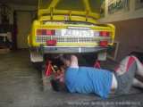 V sobotu jsme společně s Dejvidem sundali bubny a po optické kontrole všeho co šlo nacpali trošku vazelíny do ložisek, vypodložkovali axiální vůli, vše namódili zpět a auto hodily na kola. Ještě jsem pošolichal pár drobností, jako upevnění drátků volně plandajících prostorem, přešrouboval zadní SPZ a doplnil ji o kamínkové šroubky apod.