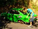 kolo bylo za autem co jelo za náma, tušim že to byl Ford Eskort. Z penzionu hned vyběhnul pán že jestli mám hever že to opravíme🙂 Když jsem mu ukázal že to nepůjde tak řek že můžem aspoň zdarma využít bazénu, což bylo milé ale nebyla na to nálada.