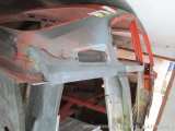 Ale během doby, která od posledně utekla, jsem přeci jen trošku pokročil. Stihnul jsem doškrábat potřebnou část podlahy, odpárat pravý práh s U výztuhou a pravý zadní podběh. Do toho mi bruska dala sbohem, takže to mi taky malinko zdrželo, než jsem koupil za ní obstojnou náhradu. Mezitím se mi podařilo sehnat potřebný nový pravý zadní podběh a nějaké další díly. Teď mi čeká vyvařování části, kde dosedá podběh, tak uvidím, jak to půjde.