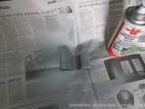 Přišla sobota a já už byl pevně rozhodnutý, že lakování této poloviny spodku do základovky, neodložím ani o den. To znamenalo přivstat si a budíček v 6:30hod. Přebrousil jsem zbytek podlahy, protože některá místa byla povrchově orezlá a na třech místech jsem se dokonce dostal skrz, ale naštěstí jen dirky o cca 2mm, takže to napravil vždy jen bod COčkem. Okolo 14hod už se rozmíchala epoxidová základovka a stříkalo se.