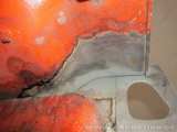 Nyní jsem se zakousnul do odpárání levého prahu. V zadní části je vidět, že už se předchozí majitel pokoušel o vyvařování.