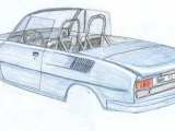Pozorný čtenář jistě pochopil, že zadní sedačky nebude kam dát. Je to celé myšlené jako dvoumístný roadster s možností laminátové střechy, nebo střechy skládací, plátěné. Ale to je ještě hodně daleko ve hvězdách. Už jsem i koupil auto, ze kterého bych to začal stavět ještě s jedním človíkem, ale pak nějak nebyly ty správné konstelace okolností a zatím z toho sešlo. Auto teď stojí na vrakovišti v Chlumci a inzerát na něj je na těchto stránkách. Na tom vrakovišti je jen odstavené, protože jinde jsem neměl místo. Tam se měla odehrávat i ona přeměna v roadster. Bohužel autodílna, která tam měla vzniknout zatím není. Ten roadster měl být takový reklamní kousek, co se taky umí.