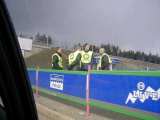 Jestli se někomu něco stalo nevíme, jen po okruhu pádila tato dvě záchranářská vozidla. Na druhém snímku můžete vidět pořadatele uprostřed náročné organizační práce (dělám si jen legraci - odpoledne už hlavní nápor polevil a nechci snižovat práci pořadatelů - dopoledne jí měli jistě až nad hlavu).
