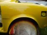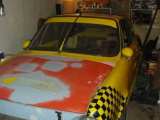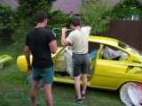 Potom jsme začali stříkat moje, barva nebyla nejlepší, i když se jednalo o akryl od PPG, ale žlutá špatně kryje, a barva začala stékat. To by ještě nebylo tak nejhorší, ale jak jsem to viděl, jak to postékalo, celkem mě to zklamalo a dal tak nějak jsem rezignoval, a dal si pár frťanů...no a co čert nechtěl v noci ještě začalo pršet a dopadlo to......posuďte sami a koukněte na fotky...