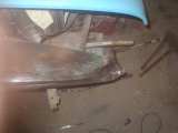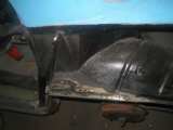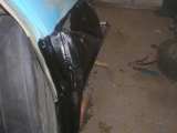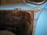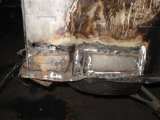 Pak následovalo oplechování - zjistili jsme, že byl Bohouš kdysi zřejmě trochu picnut a museli jsme trošku "deformovat" pásem přední čelo (resp. podběhy). Nakonec jsem si u Petra prosadil, aby se udělaly i prahy, které jsem měl nové připravené. Následná pitva původních prahů prokázala moji jasnozřivost - zvenku téměř netknuté, zevnitř počínající koroze, která by tak cca za 2 roky prorazila. Jinak slícování dopadlo celkem hodně dobře, fotky opět mluví lépe: