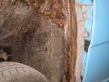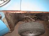 Prostě klasika - lemy, podběhy=>podlaha (než trochu), čelo. Petr se pustil do vaření, já jsem se mu průběžně motal pod nohy - odstraňoval jsem z podběhů staré vrstvy asfaltu a tlumexu, brousil vše až na čistý kov a natíral odrezovačem.