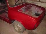 Pak následoval lak, zařekl jsem se, že auto nechci vidět, dokud nebude komplet stříknuté, takže jsem jednoho zimního dne přijel, otevřel garáž a koukla na mě krásná červená prdelka - začlo nastrojování. Bez Standy bych tam ty skla v životě nedal :). Bohouš už je v současné době aktuálnější - má už i mřížky na sání, příští týden dodám aktuální foto.