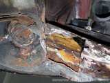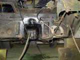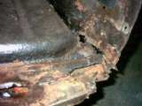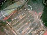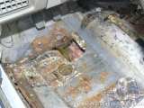 Tak si čistím podlahu spolujezdce od starých nátěru a udělal jsem do ní 3 malé dírečky, které se při pokusu o zavaření zvětšovaly a zvětšovaly až z nich byla díra 30x40, ze které se posléze stala díra 120x50 ... posléze jsem "dloubáním" udělal "maličkou dírku" do pravého nosníku. Nakoupil jsem ochranné nátěry, dovnitř BODY 910, na podvozek BODY 932 a na dutiny REZISTIN ML.