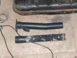 Na prvním obrázku je vidět moje nouzová oprava trubky od nádrže k víčku a částečně náhradní řešení průchodky v podběhu. Druhý snímek ukazuje stranu u víčka v blatníku. Je tam vidět odvětrávání nádrže - nová hadice a odvod bokem do blatníku. Je to zanešené, neboť jsem to nerozebíral....