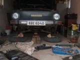 Pán auto dvakrát do roka natíral kompletně podvozek rubelou (barva ředěná toluenem a odpuzující vodu). Jinak vanička a přední kufr netknutý, vše vyloženo novinami, aby snad nedošlo k nežádoucímu doteku rezervy a lakovaných dílů karoserie, prahy OK, podlaha,alespoň co jsem zatím viděl a proklepl, taky, v autě je nová baterka. Při předvádění předchozí majitel auto startoval klikou (aby ušetřil baterku) a auto chytlo na první nášup. Sám jsem zatím startování klikou nezkoušel, přece jenom to chce grif, jinak vám klika celkem snadno dokáže přerazit zápěstí... Zamykání řadící páky:-))