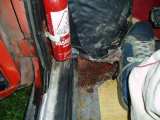 Tu je to krapek horsi. Pri prvnim nadseni z koupi jsem auti neprolez zak jak jsem mel, ale uz je to nic platne. Docela me prekvapila soudrznost barvy a rzi na levem prahu. Pri koupi jsem do toho moc nevalil a dira tam nebyla. Druhy den doma jsem si vzal sroubovak a sel propichavat... Pravy jakz takz drzi, ale do leveho jsem vykotal diru... Radeji jsem brzo prestal, protoze jsem se mohl dostat moc daleko. :) takze jedna dira. U podbehu u noh je to v celku zdrave, pricky taky a kufr vypada zachovale. Dokonce jsem tam nasel i original dekl na rezervu :)
