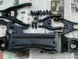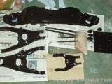 Foto 1. opískováno i s příčkou motoru, 2.nová ramena, 3.díly v žárovém zinku,skládání nápravy- prasátka průměr 22mm, no a náprava v autě