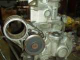 Vodní pumpa Š120 s řemenicí vlastní konstrukce a alternátor 70A Bosch z Fabie